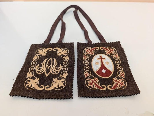 Ceremonial embroidered scapular, Brown scapular, Our Lady of Mount Carmel, Miraculous Medal, St Benedict, Catholic, Escapulario, Wool, Big scapular