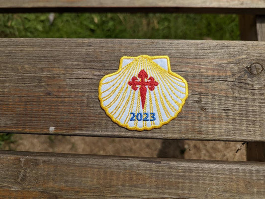 Camino shell badge, Way of St James, Buen camino, pilgrim backpack badge, teen rucksack patch, camino shell, outdoor adventure, nature trail