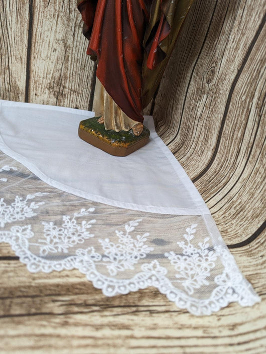 Corner shelf cloth, Altar cloth, Polcotton with lace edging