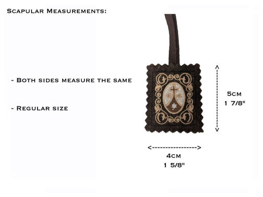 Embroidered scapular, Brown scapular, Our Lady of Mount Carmel, Multiple sizes, Miraculous Medal, St Benedict, Catholic, Escapulario, Wool