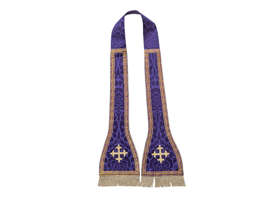 Fleur de Lys Cross Stole - Purple Priest Stole with Intricate Embroidery – Liturgical Vestment