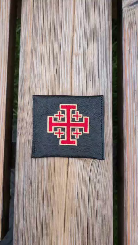 Embroidered Jerusalem Cross Leather Rosary Case – Snap Closure, Small/Medium/Large