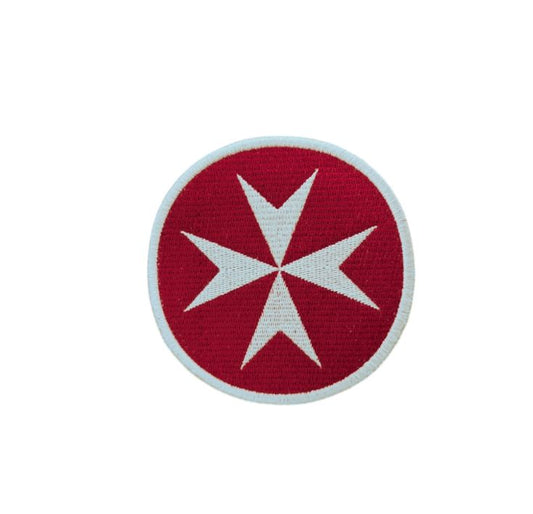 Maltese Cross Badge, Cross of St John, Malta, pilgrim backpack patch, rucksack patch, Pilgrimage, outdoor adventure, nature trail