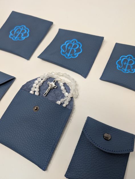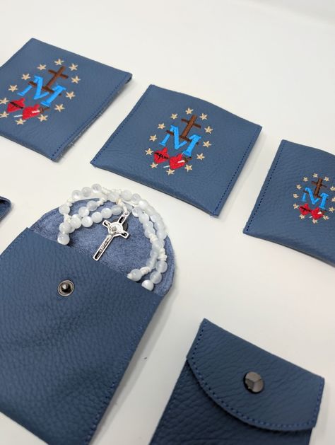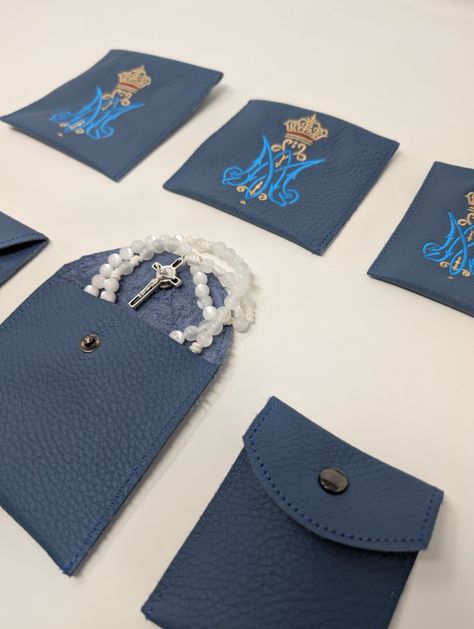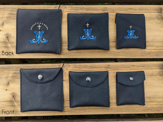 Marian Emblem case, embroidered rosary case, rosary pouch, rosary case, leather pouch, leather rosary pouch, leather rosary case, rosary bag