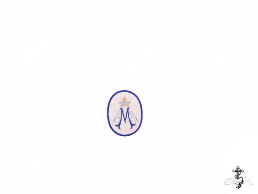 Marian symbol with crown patch, religious patch, iron on badge, sew on patch, embroidered badge, embroidered patch, crown, pilgrimage