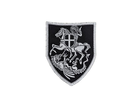 St George and the Dragon, Black and White, Badge, Patch, England patron saint, Medieval icon, National flag emblem, Barcelona and Catalonia, Shield