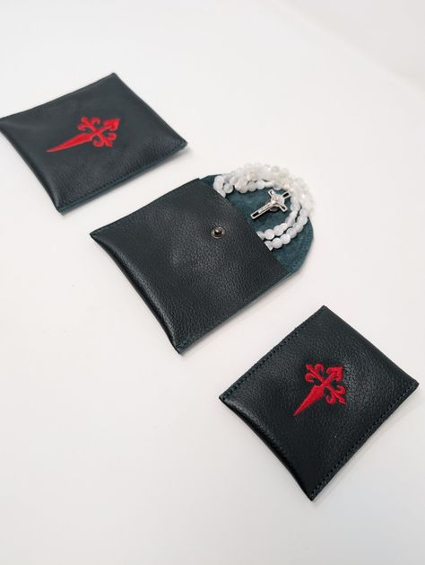 St James Cross, Santiago cross, Cruz espada, St James the Greater, embroidered rosary case, rosary pouch, leather pouch, case, rosary bag