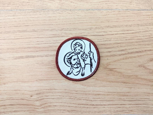 St Christopher badge, religious patch, iron on badge, sew on patch, Pilgrimage, Patron Saint of travelers, Pilgrim, Christopher and Jesus