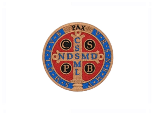 St Benedict Badge back, Benedict of Nursia, religious patch, iron on badge, sew on patch, embroidered bage, embroidered patch, pilgrimage