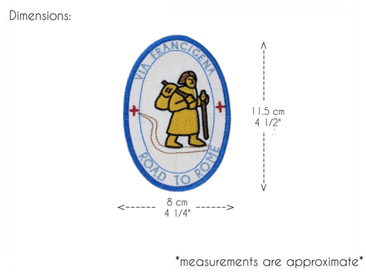 Via Francigena badge, religious patch, iron on badge, sew on patch, embroidered badge, embroider patch, Way to Rome, Road to Rome pilgrimage