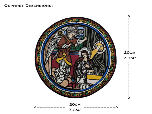 The Annunciation Orphrey, Our Lady, Iron on Patch, Vestment making, Embroidered, Ecclesiastical vestment making, The Annunciation of Mary