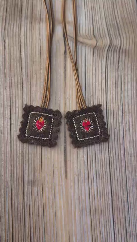 Tiny Brown Scapular | Mini Wool Scapular | Our Lady of Mount Carmel | Small Catholic Gift | Immaculate Heart of Mary | Scared Heart of Jesus