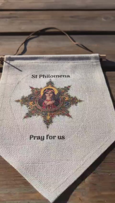 St Philomena Pennant, Mini Banner, Catholic Religious Sacramental, Devotional, Pilgrimage, Rosary, Oratory Prayer, Prayer Corner, Baptism