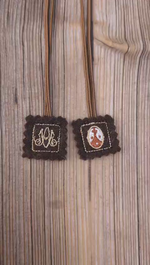 Tiny Brown Scapular | Mini Wool Scapular with Carmelite Symbols | Our Lady of Mount Carmel | Catholic Gift