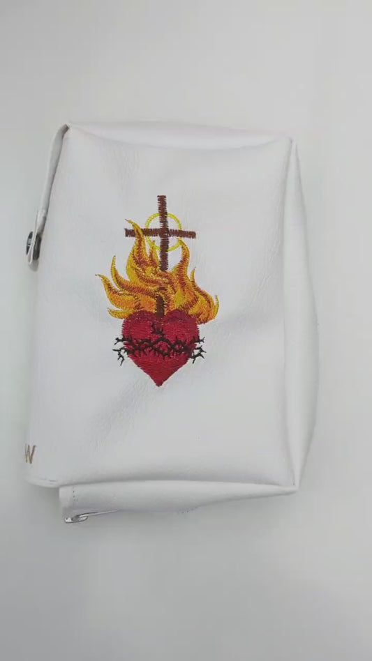 Custom White Leatherette Zipped Book Cover – Personalised Catholic Missal Cover