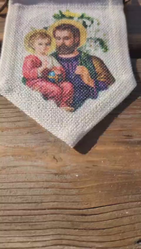 This beautiful Catholic banner features St Joseph - is perfect for any religious setting. This mini banner also makes a wonderful sacramental, devotional, pilgrimages or rosary wall hanging. Printed in the UK using quality materials this mini banner is suitable for indoor and outdoor use.